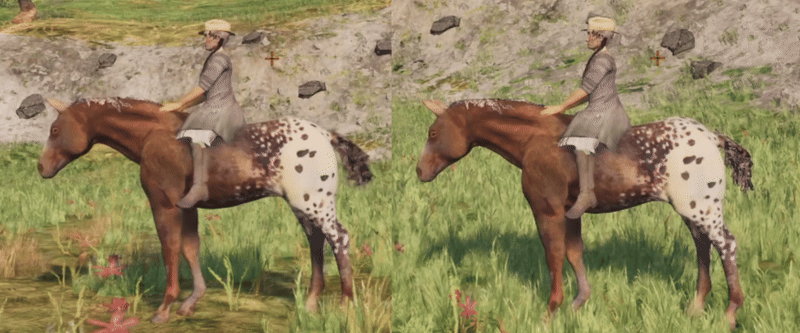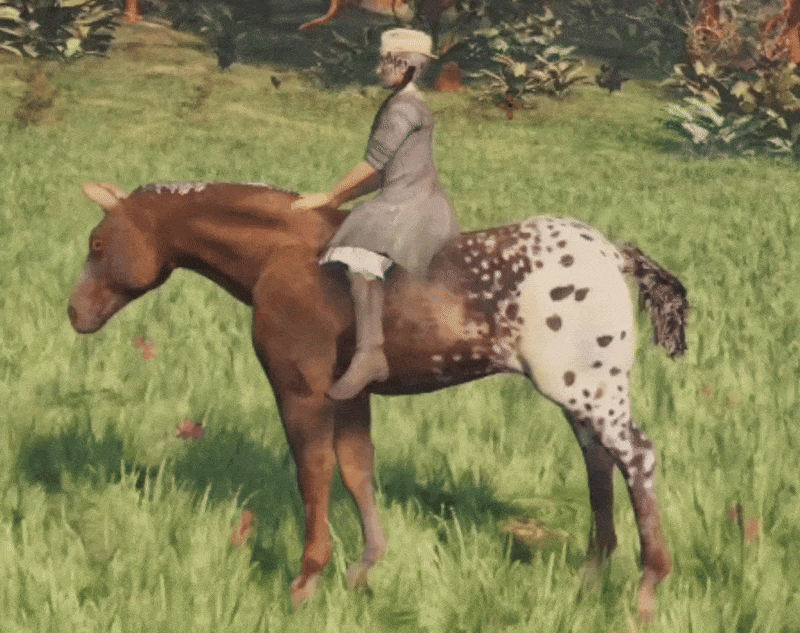 The horse also turns their neck slowly as the player requests the horse turn. As the horse turns their forward movement slows, so they are moving more slowly when they are in a hard turn than they would be moving straight ahead.