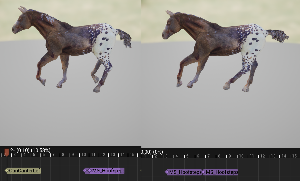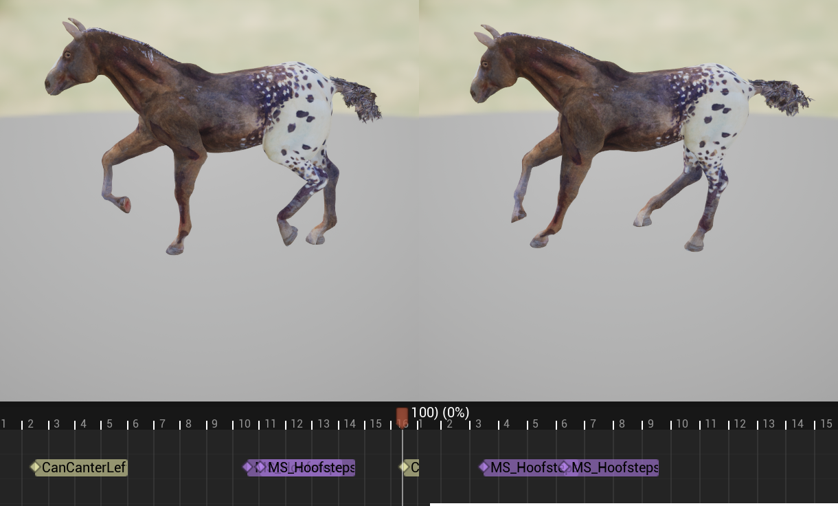 Left: The trot animation in the position that the anim notify "CanCanterLeft" is called.